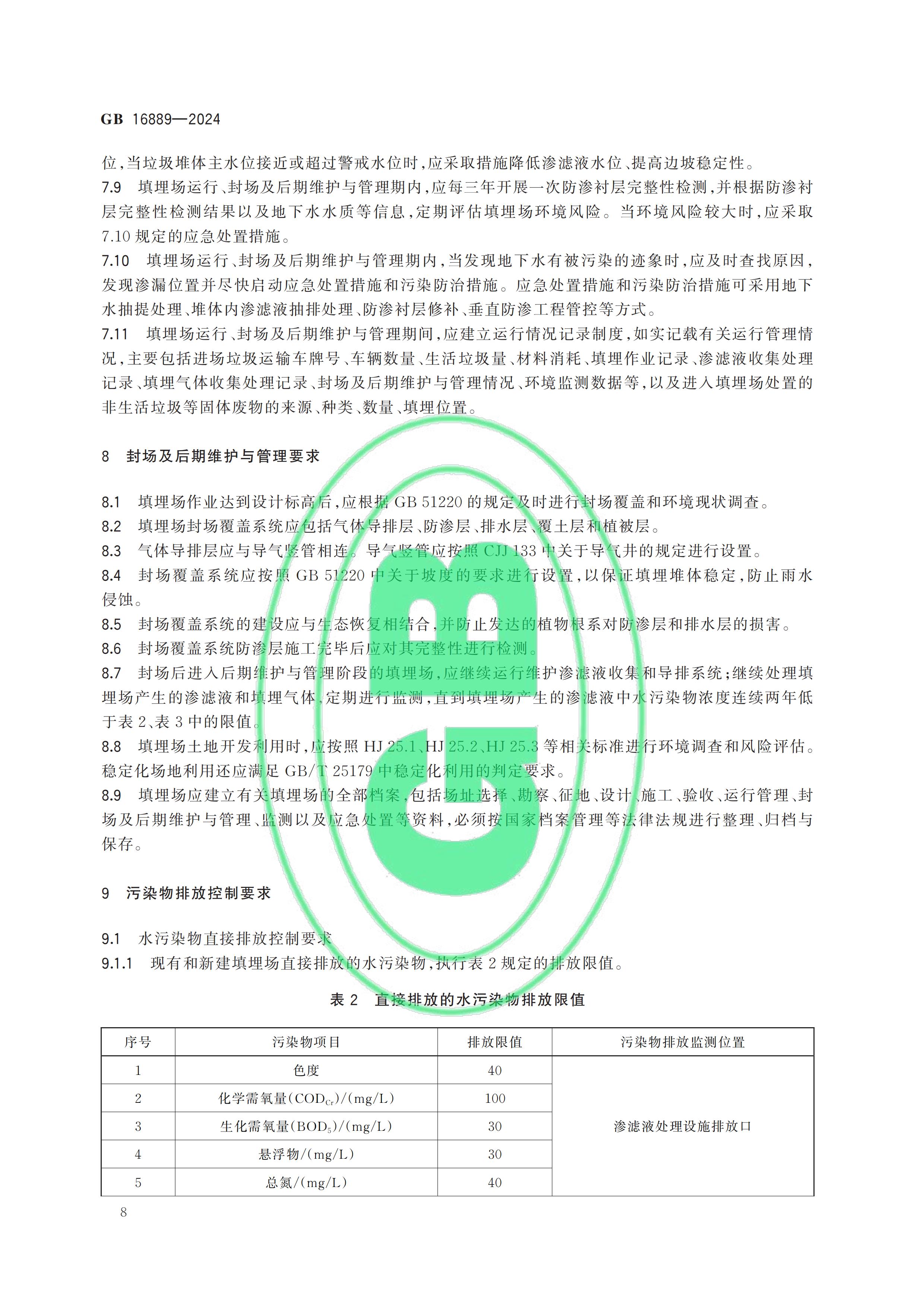 從“全國標準信息公共服務平臺”獲悉,國家標準《生活垃圾填埋場污染控制標準》(GB 16889-2024)已于2024年7月24日正式發布,新標準將替代原先的GB 16889-2008,于2024年9月1日起正式實施。以下是GB 16889-2024標準全文: