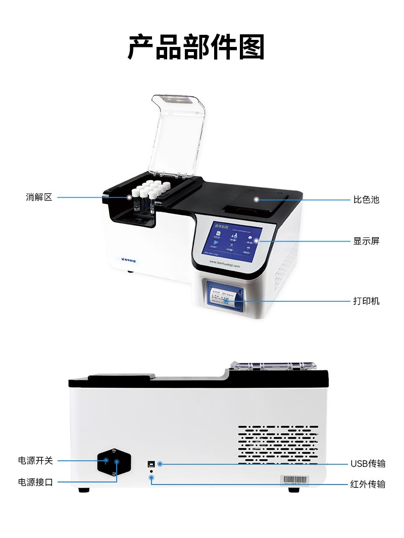 3.自帶消解器:儀器自帶消解器,具有智能升溫、智能定時(shí)和延時(shí)保護(hù)等功能,可對(duì)水樣進(jìn)行消解;